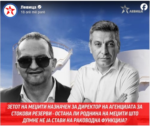 Emërimi i fundit i DHËNDRIT të Izet Mexhitit, Besim KOKA, si drejtor i Agjencisë për Rezervat e Mallrave, është një tjetër copë në mozaikun e nepotizmit të hapur, të paturpshëm dhe sistemik të praktikuar nga qeveria aktuale e DPMNE-së, VLEN-ZNAM➡️Më parë, kushëriri i parë i ish-zëvendëskryeministrit të parë dhe kryetarit aktual të bashkisë ÇAIR-SHKUP,IZET MEXHITI, u emërua drejtor i MEPSO-s. Një kushëri tjetër i tij është drejtor i NOMAGAS, dhe tani edhe dhëndri po merr një pozicion drejtues në një institucion strategjik shtetëror.