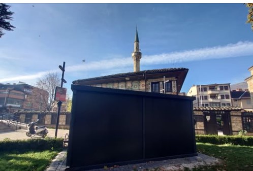 Megjithatë, dje, në mes të ditës, pikërisht në atë hapësirë ku ishin të vendosura ato tre ulëse, u vendos një objekt/kiosk në formë kontejneri, i cili në masë të madhe e devalvon dhe e shëmton hapësirën ku është vendosur, veçanërisht duke bllokuar pamjen dhe degraduar vlerat e Xhamisë së Pashës.