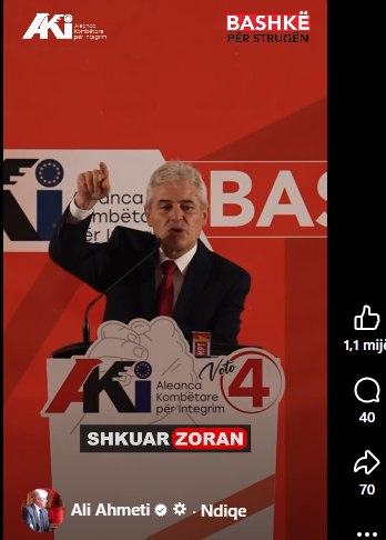 Lideri i BDI-së, Ali Ahmeti, në një tubim zgjedhor tha set:Kristijanin e mundon shumë se janë bashkuar shqiptarët.