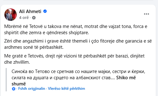 Mbrëmë në Tetovë u takova me nënat, motrat dhe vajzat tona, forca e shpirtit dhe zemra e qëndresës shqiptare.