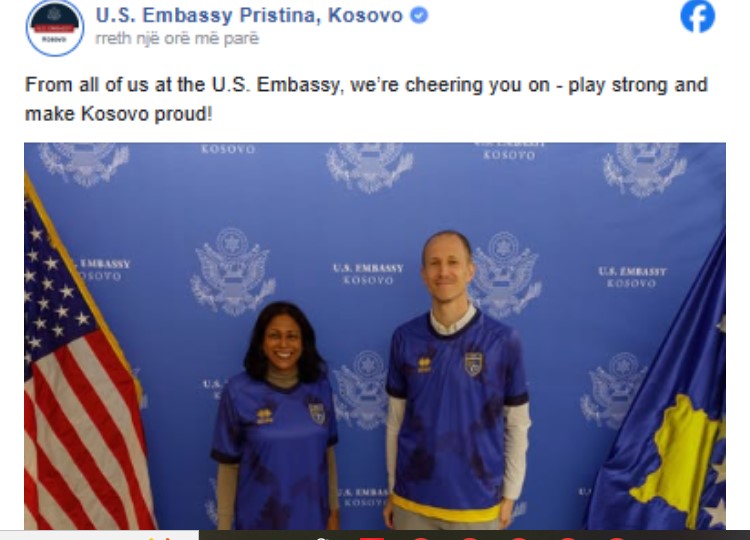 Ambasada e Shteteve të Bashkuara të Amerikës ka ndarë disa fotografi nga ambientet e saj në Prishtinë, duke treguar përkrahjen për Kosovën para ndeshjes historike ndaj Turqisë.