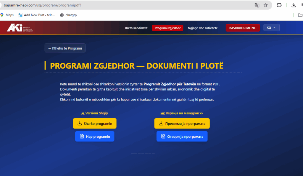 Kandidati për kryetar të Komunës së Tetovës, Bajram Rexhepi, ka prezantuar zyrtarisht programin e tij për periudhën 2025–2029, i cili tashmë është i disponueshëm edhe në versionin digjital.