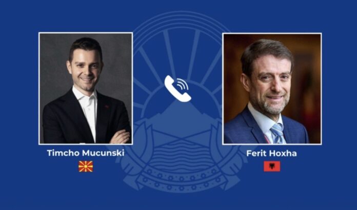 Ministri i Punëve të Jashtme dhe të Tregtisë së Jashtme, Timço Mucunski, realizoi sot një bisedë telefonike me ministrin për Europë dhe Punë të Jashtme të Shqipërisë, Ferit Hoxha.Nga MPJTJ thonë se të dy ministrat konfirmuan kënaqësinë e përbashkët për marrëdhëniet e shkëlqyera bilaterale mes dy vendeve, duke theksuar gatishmërinë për t’i avancuar ato më tej.