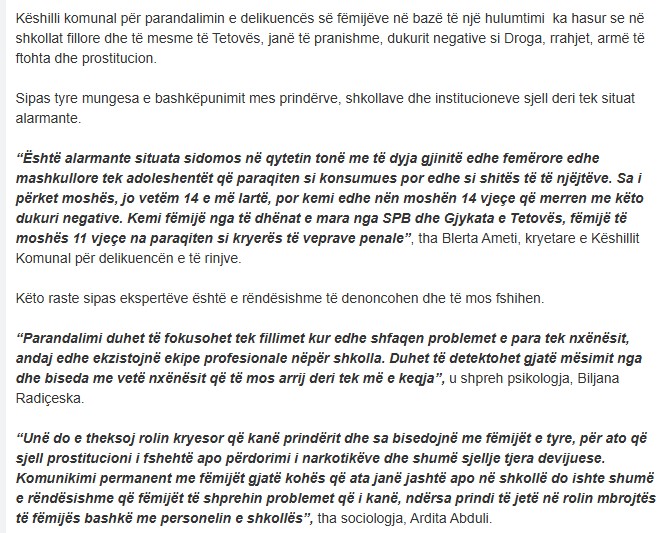 - Reagimi institucional: veprohet vetëm pasi ndodh incidenti dhe del në rrjete sociale.