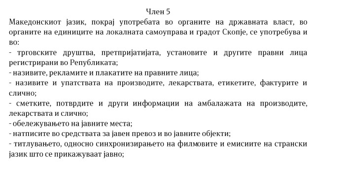 Nga ajo që po përflitet nga gazetarët e bllokut maqedonas në vitin 2026 do të duhet të fillojë të vlejë Ligji për Përdorimin e Gjuhës Maqedonase i cili me datë 06.02.2024 ka hy në fuqi dhe domeret me këtëligj Inspektoriat për përdorimin të standardizuar të gjuhës maqedone në kuadër të Ministrisë së kulturës ndaj siç thonë nënçmimit të gjuhës shtetërore në mbishkrimet e shitoreve lokaleve etj posaçërisht në Pollog ,dënimet do variojnë nga personat fizik në persona juridik fillimi është 1.500 euro.