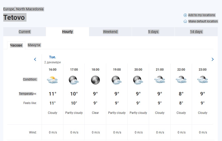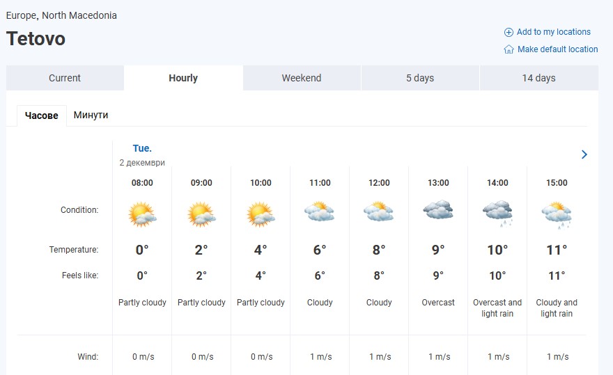 Vranësira të ndryshueshme, në mëngjes në disa lugina do të ketë mjegull të lehtë. Drejt fundit të ditës dhe gjatë natës do të ketë shira lokalë të rastësishëm. Do të fryjë erë e lehtë deri mesatare nga juglindja. Në Shkup, kryesisht me vranësira me erë të lehtë jugore.