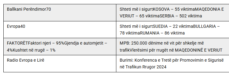 Në vitin e kaluar, 2024, në Maqedoninë e Veriut në aksidente trafiku jetën e kanë humbur 142 persona.