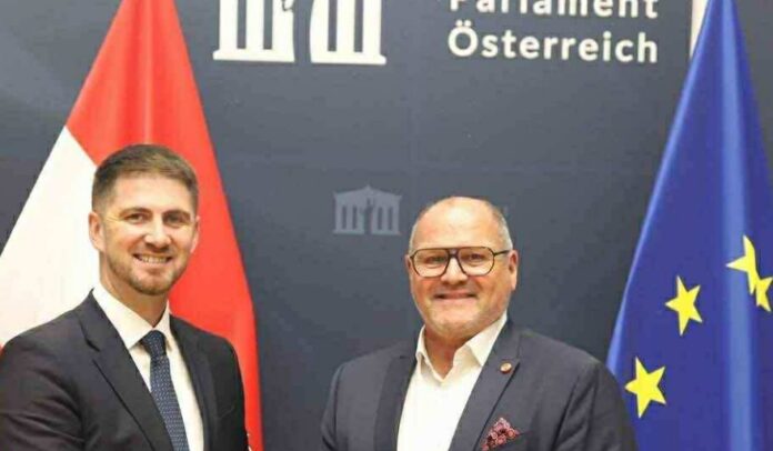 Gjatë vizitës së tij zyrtare në Austri, Mustaf Veseli u prit në Parlamentin e Republikës së Austrisë ku zhvilloi një takim miqësor dhe konstruktiv me deputetin austriak, z. Alois Schroll.
