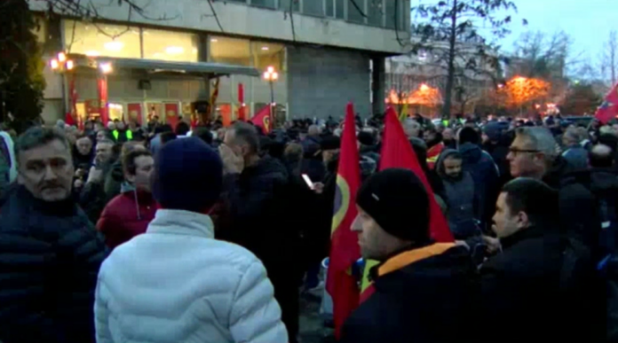 “Vetëm për një vit, shpenzimet tona të jetesës janë rritur për 6,000 denarë për shkak të politikave të këqija dhe tregtarëve të padrejtë, të cilët nuk e lënë tryezën bosh para festave më të mëdha. Faleminderit pronarëve që gjysma e Maqedonisë iku, që ne kemi qenë jo produktivë. Ata janë shumë produktivë me Mercedes, Porsche dhe vila në Greqi”, u shpreh Ivan Peshevski – kryetar i Sindikatës së Ndërtimit.