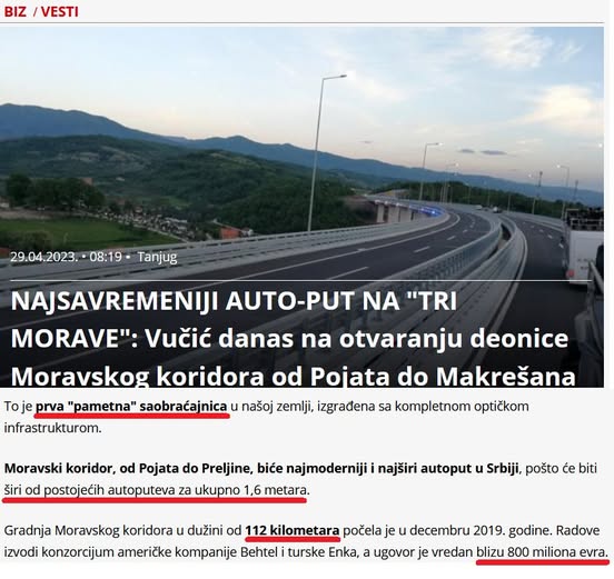 BallinaLajmeSa i kushtoi Sërbisë ndërtimi i autostradës Moravski Koridor nga Behtel Enka...