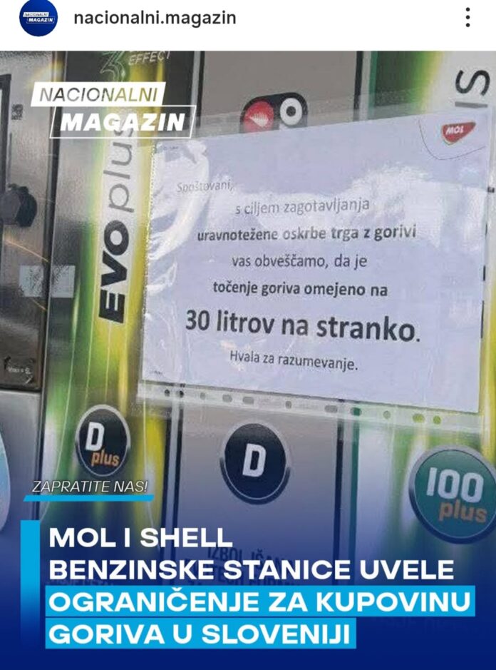 Që nga mesnata është në fuqi vendimi për kufizim të përkohshëm të furnizimit me karburant në pikat e karburantit në Slloveni, me qëllim të reduktimit të problemeve në furnizimin me derivatet e naftës