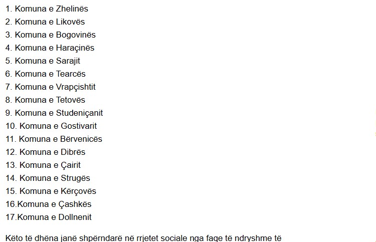 Sipas të dhënave zyrtare të regjistrimit të popullsisë të vitit 2021, në nga 80 komunat e Republikës së Maqedonisë së Veriut, shqiptarët janë grup etnik shumicë thuajse në rreth 17 komuna.Këto komuna janë kryesisht në pjesën perëndimore dhe verilindore të vendit