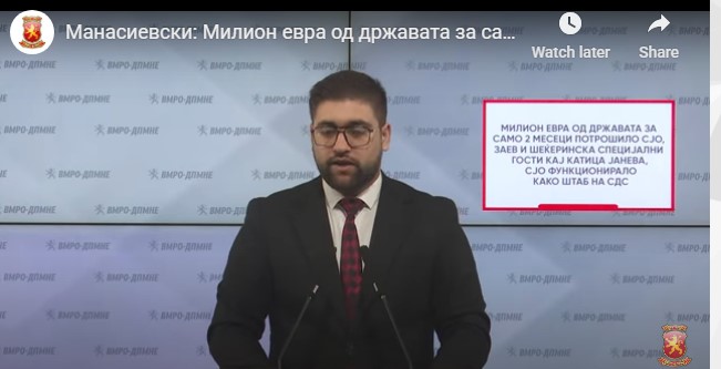 “PSP-ja e shuar vepronte në kufijtë e ligjit, mysafirët më të shpeshtë ishin Zoran Zaev, Radmilla Shekerinska, këshilltarët e Oliver Spasovskit, çifti kryesor prokuror ishte Lençe Ristoska dhe Gavril Bubevski, buxheti shpenzohej për kafe, lajthi dhe kontrata për të afërmit dhe miqtë e prokurorëve të PSP-së, si dhe njerëz nga SDS-ja. Detajet tregojnë se PSP-ja shpenzoi pa nevojë miliona euro të qytetarëve. Vetëm për dy muaj në vitin 2015, u shpenzuan një milion euro, gjë që padyshim kërkon një hetim. Prandaj, kryeprokurorja e PSP-së, Katica Janeva, e cila, pas shuarjes së PSP-së, përfundoi me dënim me shtatë vjet burg për marrje ryshfeti, dhe vitin e kaluar mori lirim me kusht me detyrim për t’u paraqitur në Gjykatën Penale të Shkupit deri në fund të dënimit të saj, e quajti veten një vajzë milion dollarëshe”, thuhet në deklaratën e VMRO-DPMNE-së.
